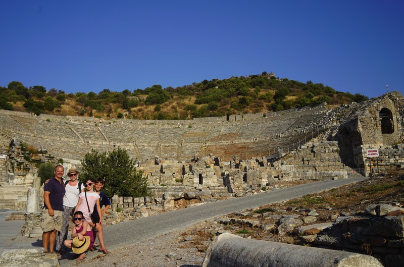Alors moi, on m’a collé Ephèse à raconter… Pas facile, je ne sais pas rédiger des longues lettres… Alors, j’ai fermé les yeux et j’ai refait la journée dans ma tête à voix haute, et Maman a tout écrit pour moi. Comme ça, j’ai des souvenirs et vous voyez Ephèse avec mes yeux!