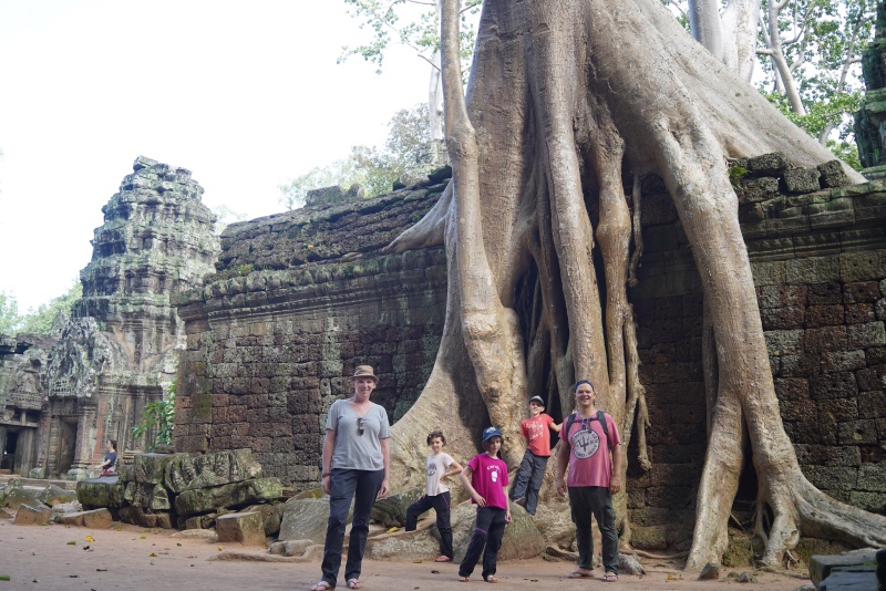 Puis, grâce à Rosette, une bonne amie de Fred, nous avons la joie de passer une journée avec Prasnar – son cousin – et sa famille. Prasnar a fui comme beaucoup le Cambodge d’après la révolution khmère dans les années 70 alors qu’il était enfant, et il est arrivé avec sa maman en France au début des années 80. Il a toujours souhaité apprendre et pratiquer la langue de son pays, quand bien même il ne savait pas s’il aurait la possibilité de revenir un jour. Et puis, un jour, il est revenu et a décidé de s’établir au Cambodge, il a désormais une femme et deux filles de l’age des nôtres. Nous devions rester pour le déjeuner, et puis nous sommes restés passer la nuit… Autant vous dire que nous avons passé un très bon moment. Les échanges ont été super enrichissants, sur l’Histoire du Cambodge, les Us et Coutumes, et les enjeux des années à venir.