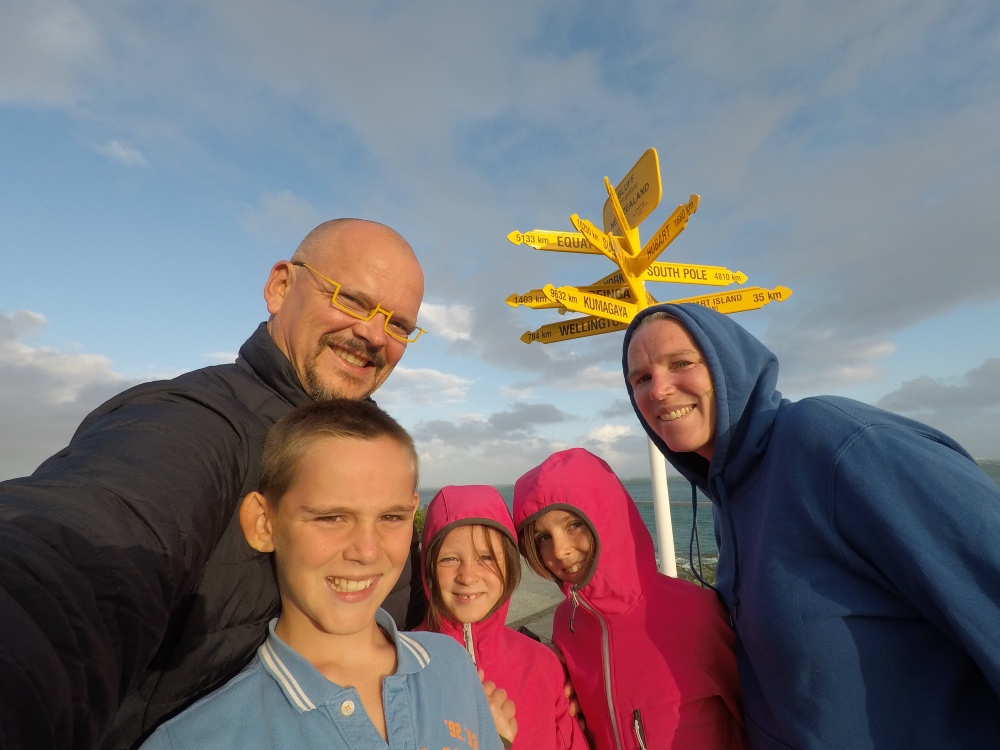 En arrivant à Invercargill, nous avons l’impression d’être littéralement arrivés au bout du Monde. La ville s’étend à perte de vue, et elle est morte de chez morte… Et pourtant, nous sommes samedi soir. Nous décidons du coup, pour ne pas avoir le moral à zéro de déprime de pousser encore un peu plus loin jusque Bluff… au bout de la presqu’île. Et là, nous sommes vraiment au bout du bout! C’est également ce jour que nous sommes à mi-parcours du Tour du Monde…